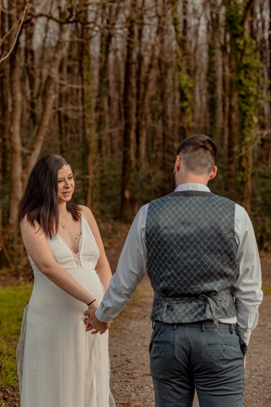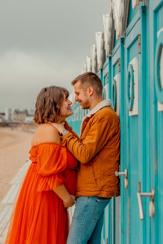 Le jour du shooting, vous pouvez prendre une ou plusieurs tenues, qui vous correspondent et vous plaisent. Certains futurs parents choisissent d’être en t-shirt blanc/jean, d’autres en veste pour le futur papa et robe de soirée : il n’y a pas de règle, l’essentiel est que cela vous ressemble, que vous soyez en valeur et à l’aise.